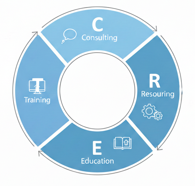 The C-R-E-T Consulting Framework represents a holistic approach to workforce solutions by integrating Consulting, Resourcing, Education, and Training into a single, scalable delivery module .